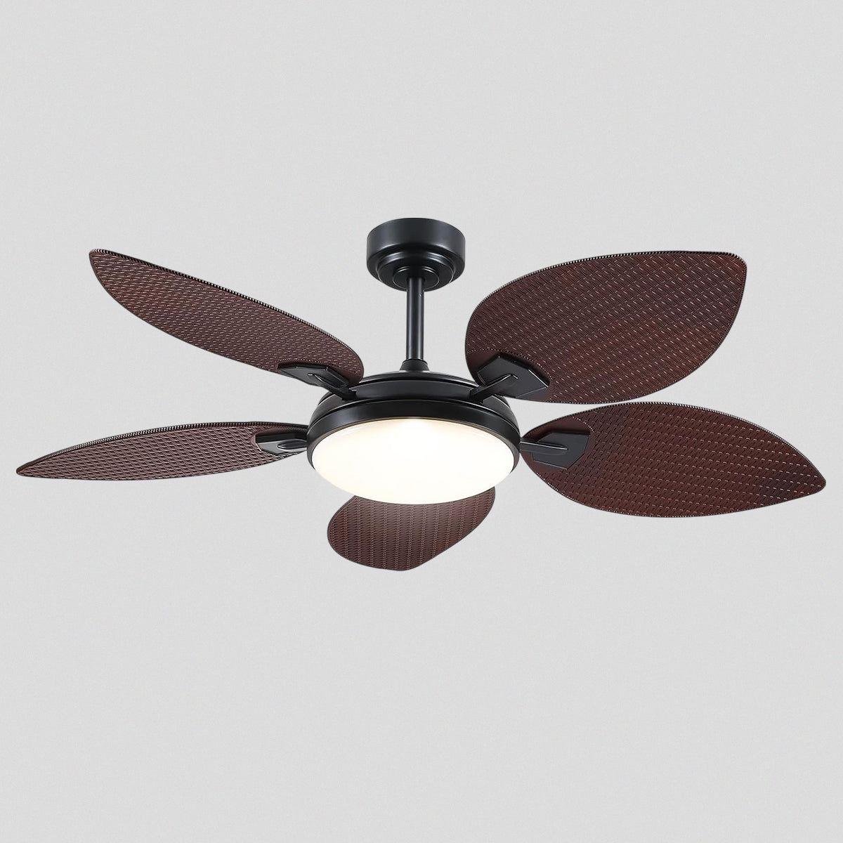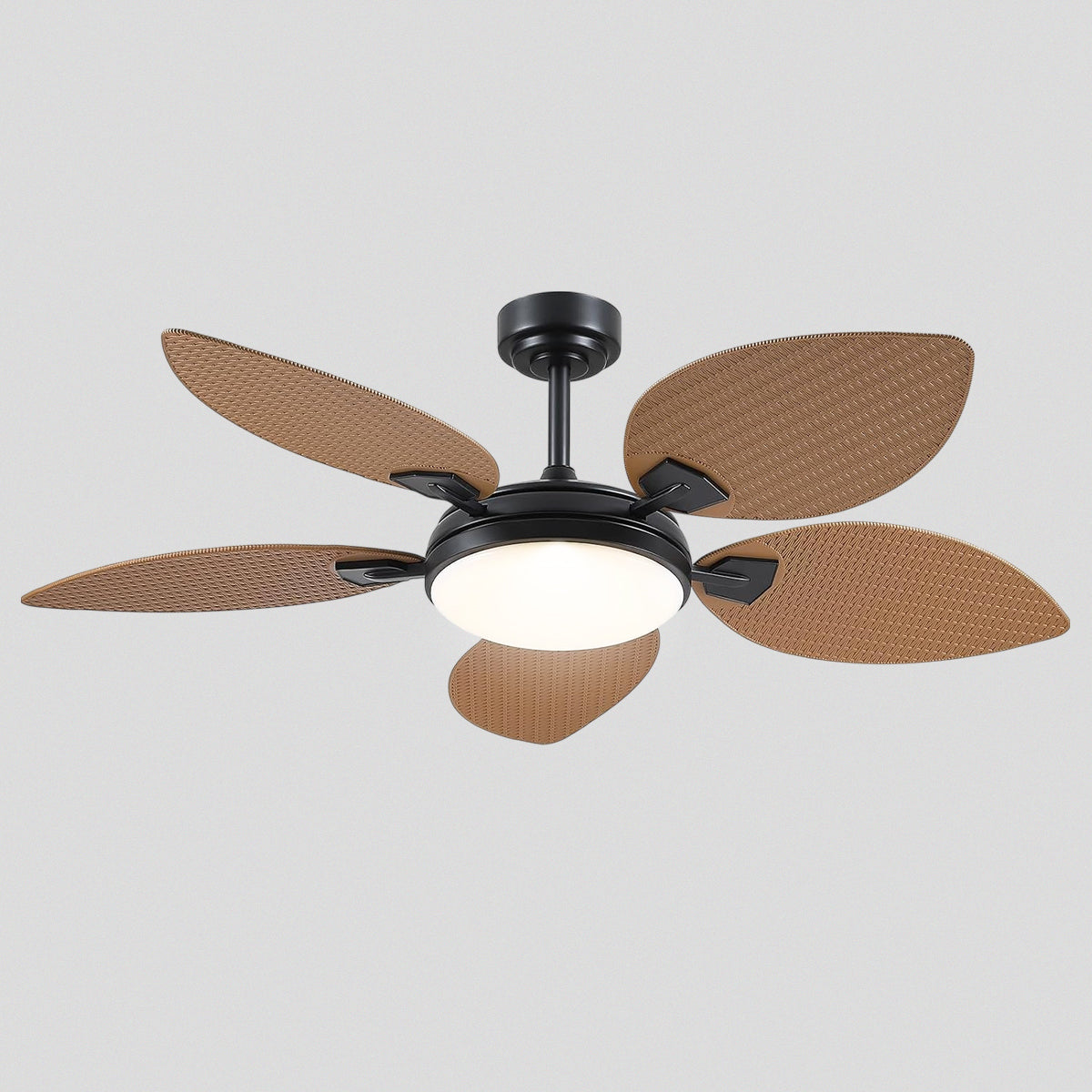 This 52" outdoor ceiling fan features five uniquely crafted palm leaf blades that add natural beauty and elegance to any space. The angled blade design generates strong, refreshing airflow, creating a comfortable tropical ambiance in bedrooms, living rooms, porches, patios, and other indoor or outdoor areas.