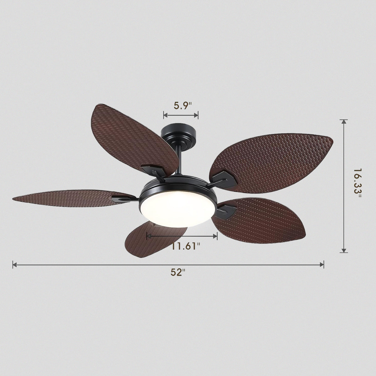 Ceiling Fans with Lights Palm Leaf Ceiling Fan for Patios Porch 6 Speeds, Reversible 52"