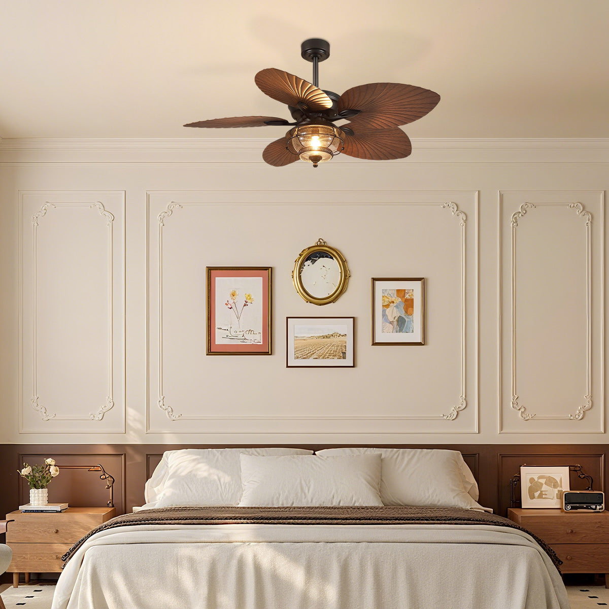 Stay comfortable year-round with the Tropical Ceiling Fan. Its stylish design blends seamlessly with any décor, making it perfect for living rooms, family spaces, and beyond. The fan features elegant palm-leaf blades for a tropical touch and is compatible with remote controls for added convenience. Its ultra-quiet, 3-speed reversible motor ensures versatile performance—ideal for medium to large rooms like bedrooms, dining areas, or living spaces. Experience effortless cooling and heating with this sleek and functional ceiling fan.
