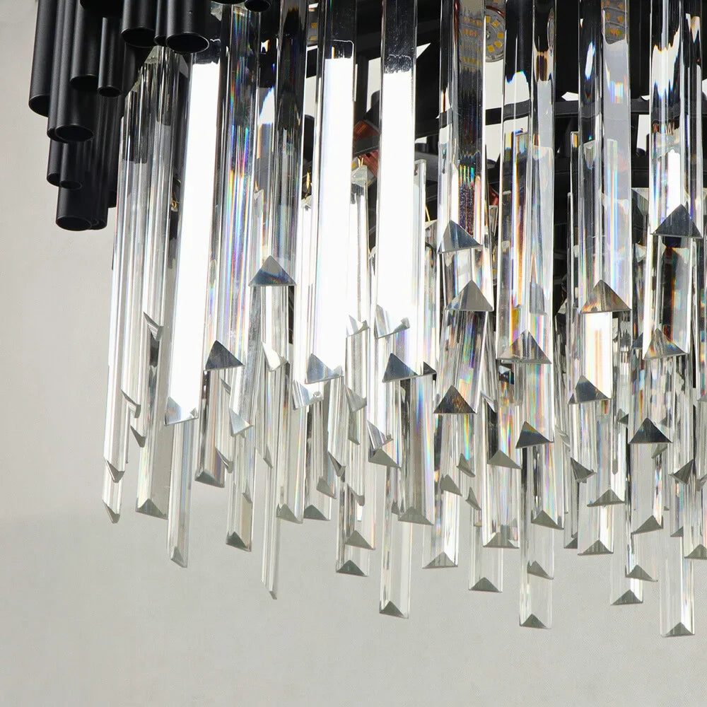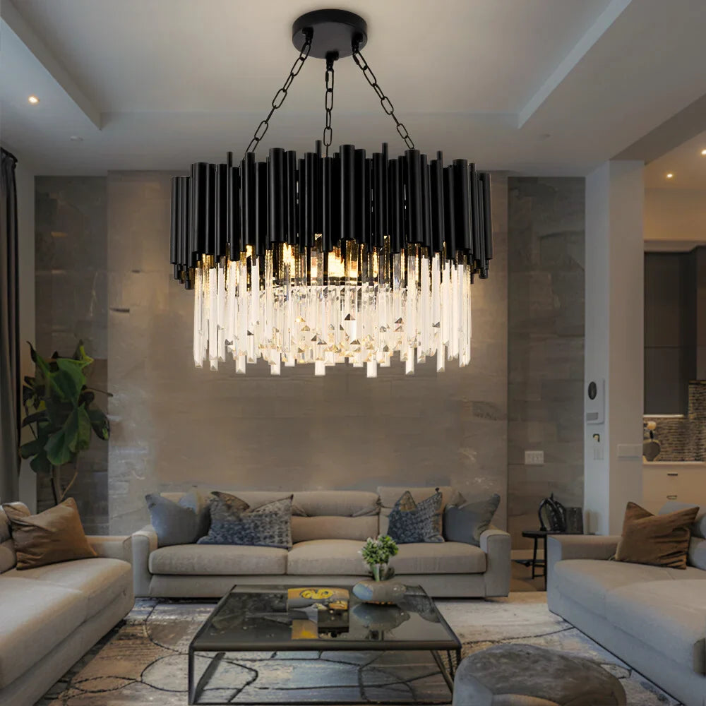 Illuminate your space with this black crystal lighting, a nocturne matte black hanging chandelier and stunning K9 crystals. Our contemporary black chandelier is perfect for creating a bold, elegant statement in your home that features a dimmable color temperature and adjustable hanging chain that you can customize the light to suit any mood.