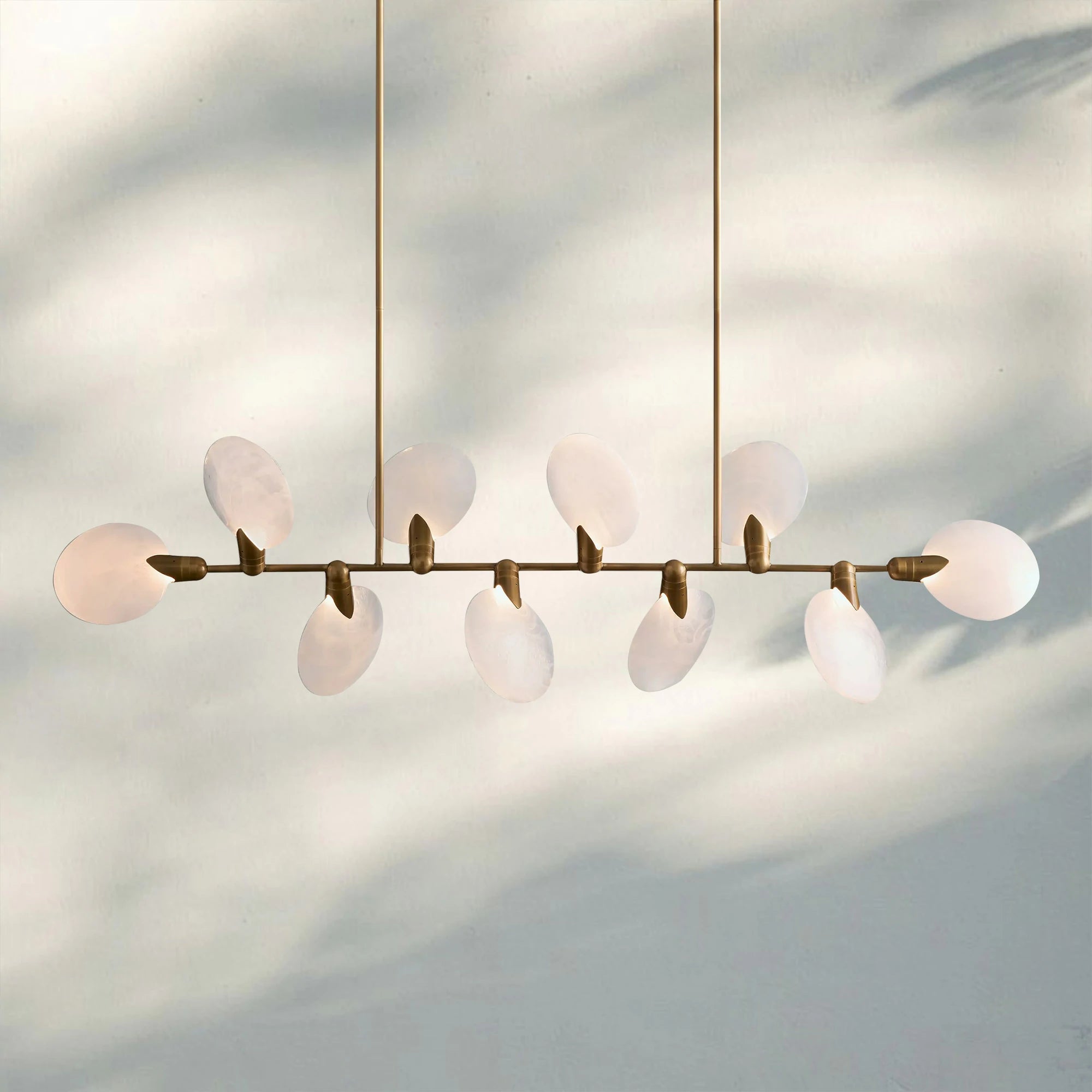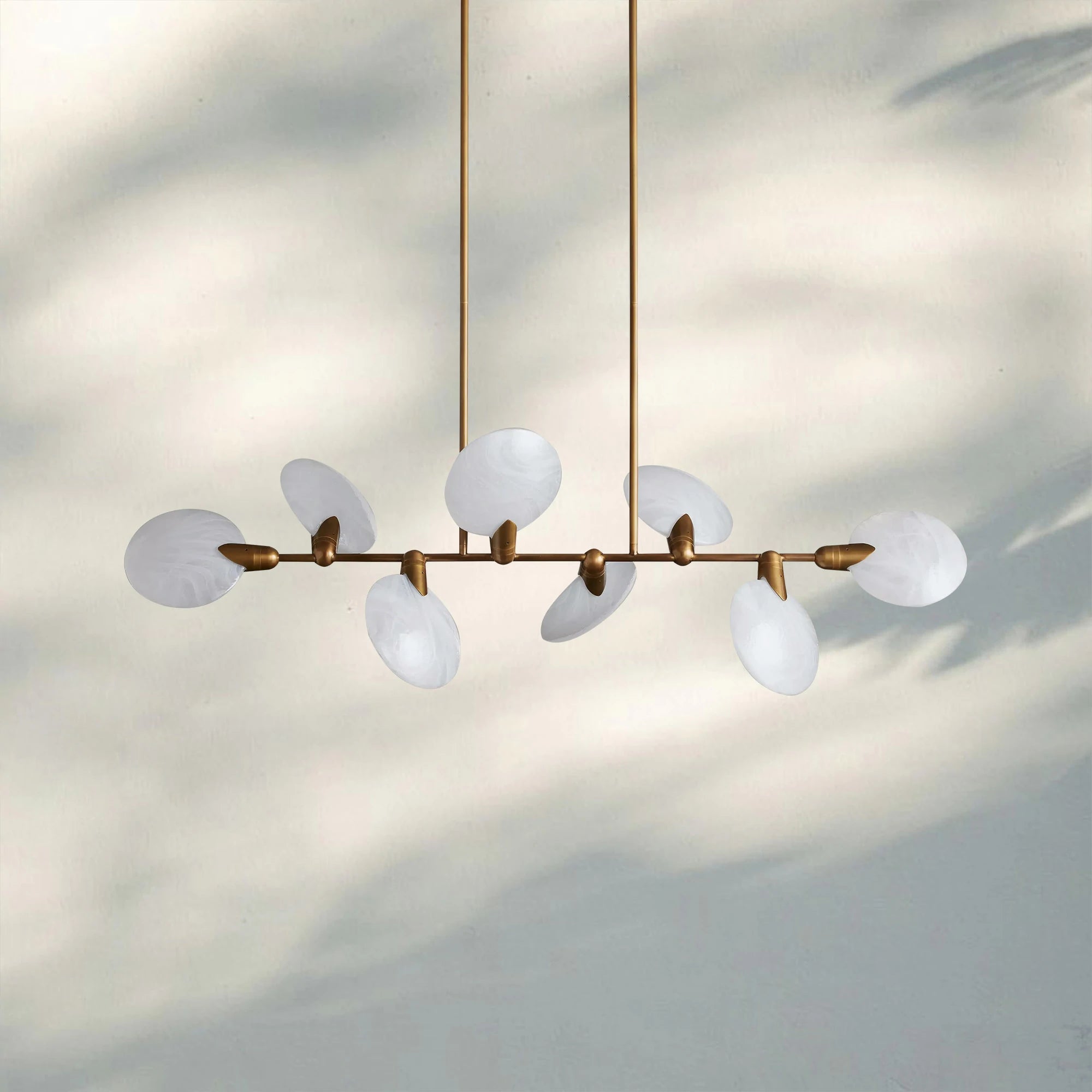 Our artfully crafted Lyla Collection brightens any room with its captivating petal-like silhouette. Each disc is hand-blown from translucent glass, the light within illuminating the natural swirls, streaks, and textural ripples.