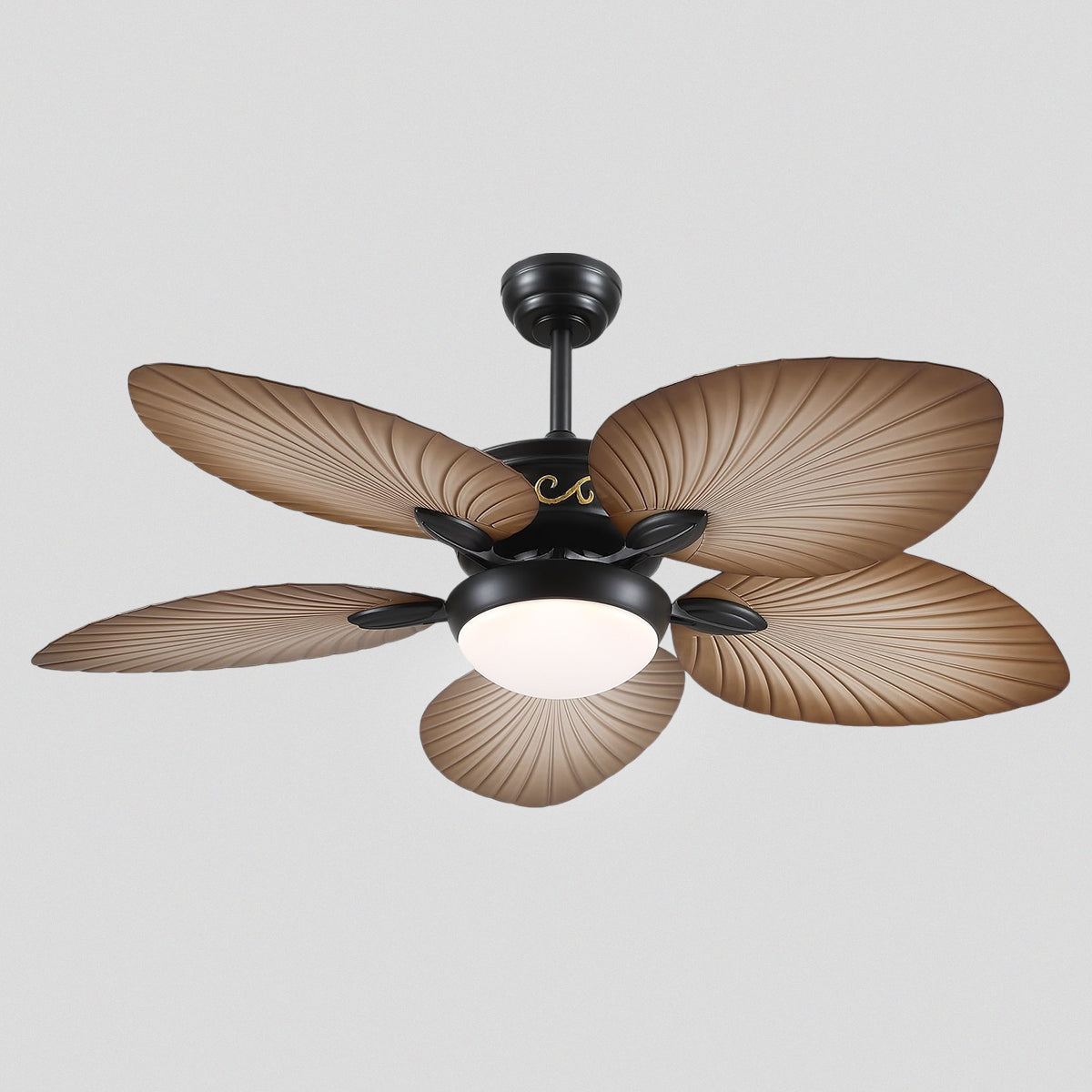 - This palm leaf ceiling fan with light uses an efficient and silent DC motor to minimize wind noise.