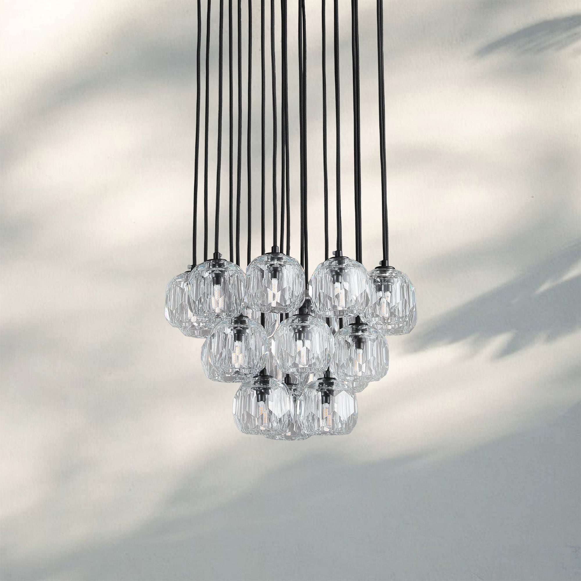 Crafted from solid brass and crystal glass, the Bouble collection of luminaires exemplifies his passion for luxury materials and superior craftsmanship. Each faceted sphere is hand polished and honed to reflect and refract light while fully showcasing the minimalist design.