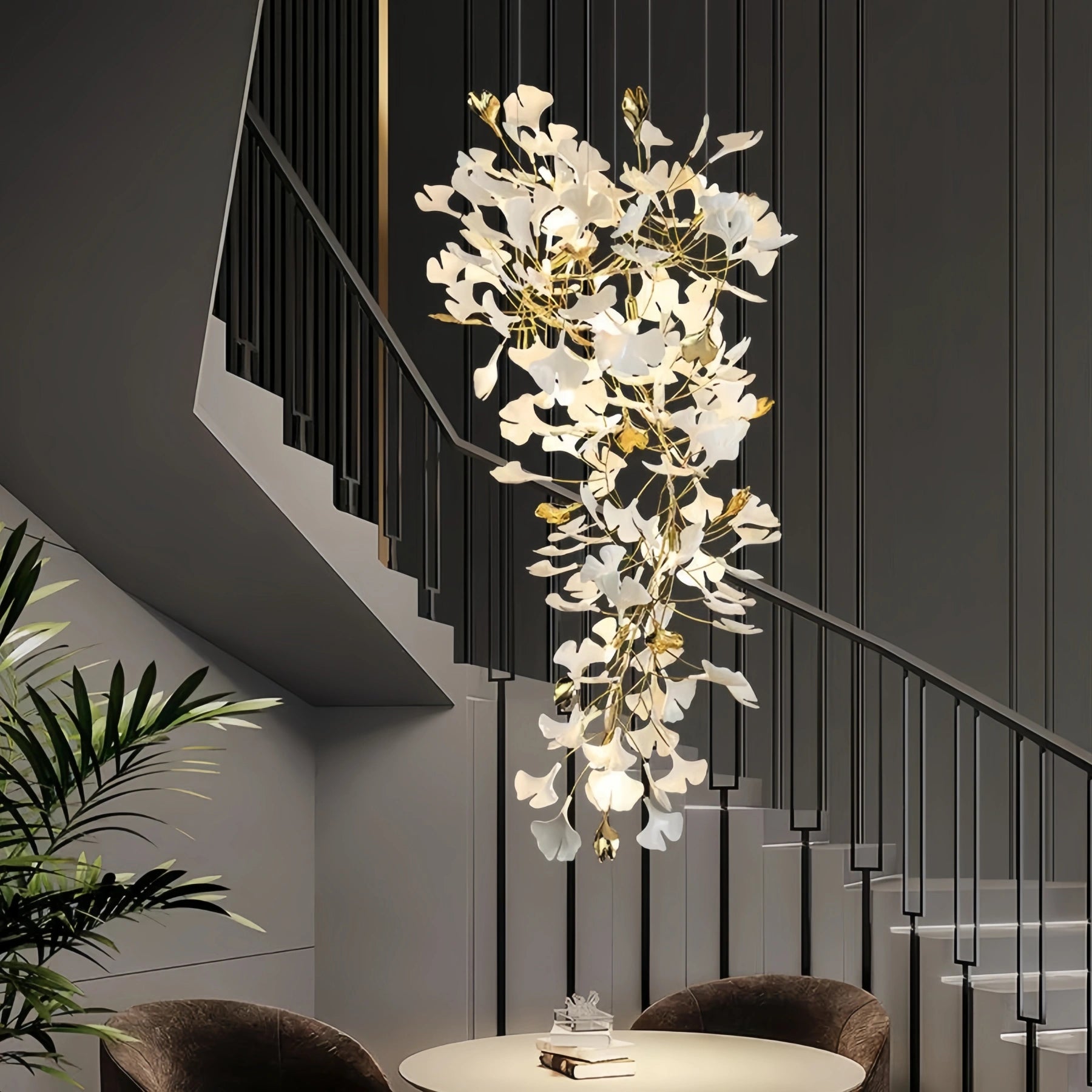Ceramic Ginkgo Cascading A Branch Chandelier