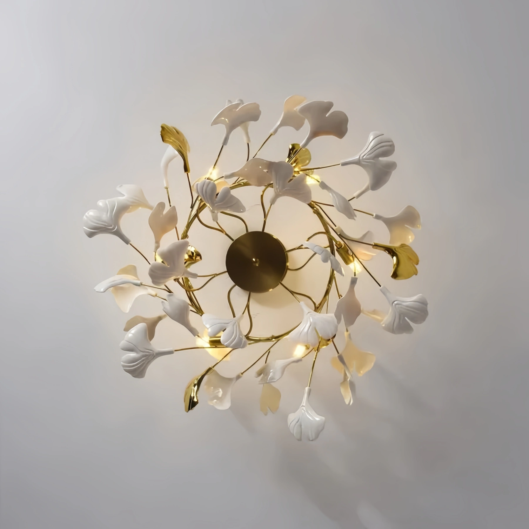 Gingko Chandeliers are impressive bespoke installations, composed of handcrafted porcelain leaves. The interplay between ceramic and light has the power to create a sense of well-being and warm atmosphere. The light sculpture goes much further than its functional purpose of lighting a space. By illuminating itself, it defines its own shape and presence, becoming a mesmerizing artwork. Like a living plant, it has a natural, dynamic energy that both calms and revitalizes us. The design of the installations goes hand in hand with the architectural space and with the ideas of the architects and interior designers.