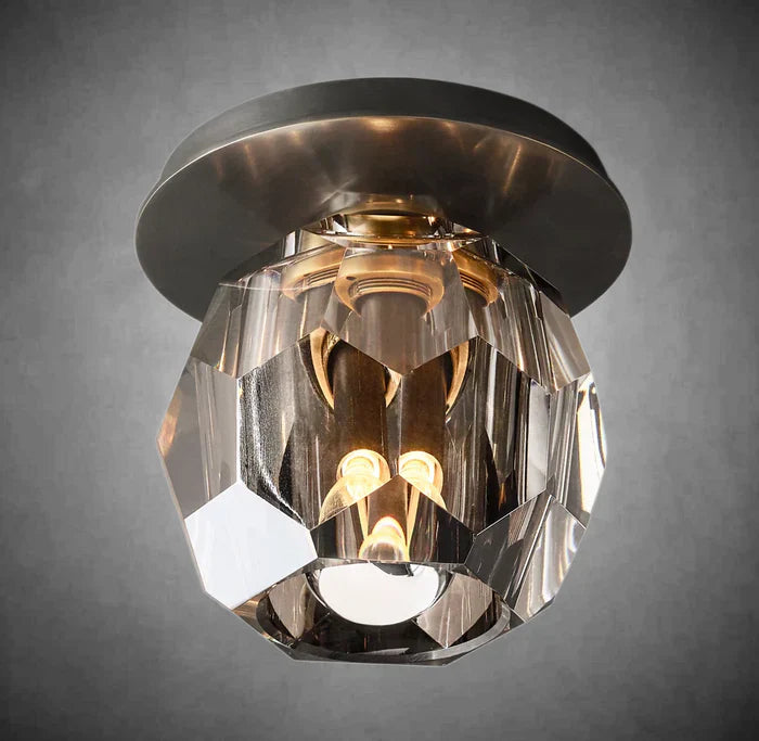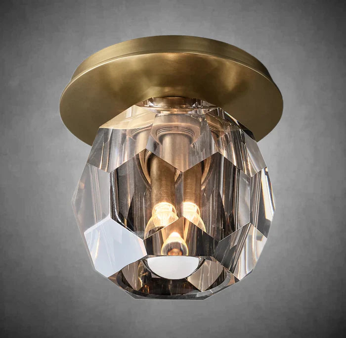 Crafted from solid brass and crystal glass, the Bouble collection of luminaires exemplifies his passion for luxury materials and superior craftsmanship. Each faceted sphere is hand polished and honed to reflect and refract light while fully showcasing the minimalist design.