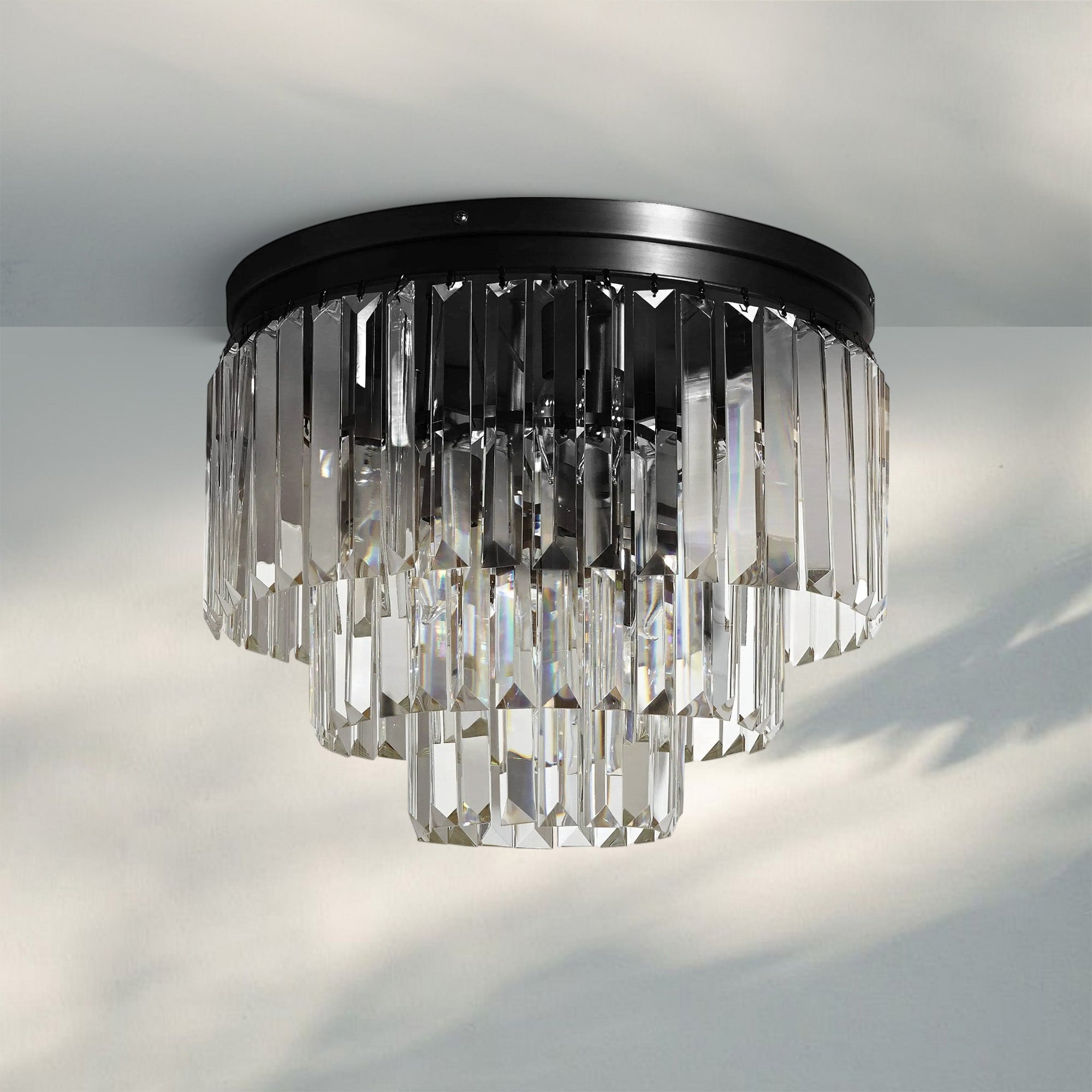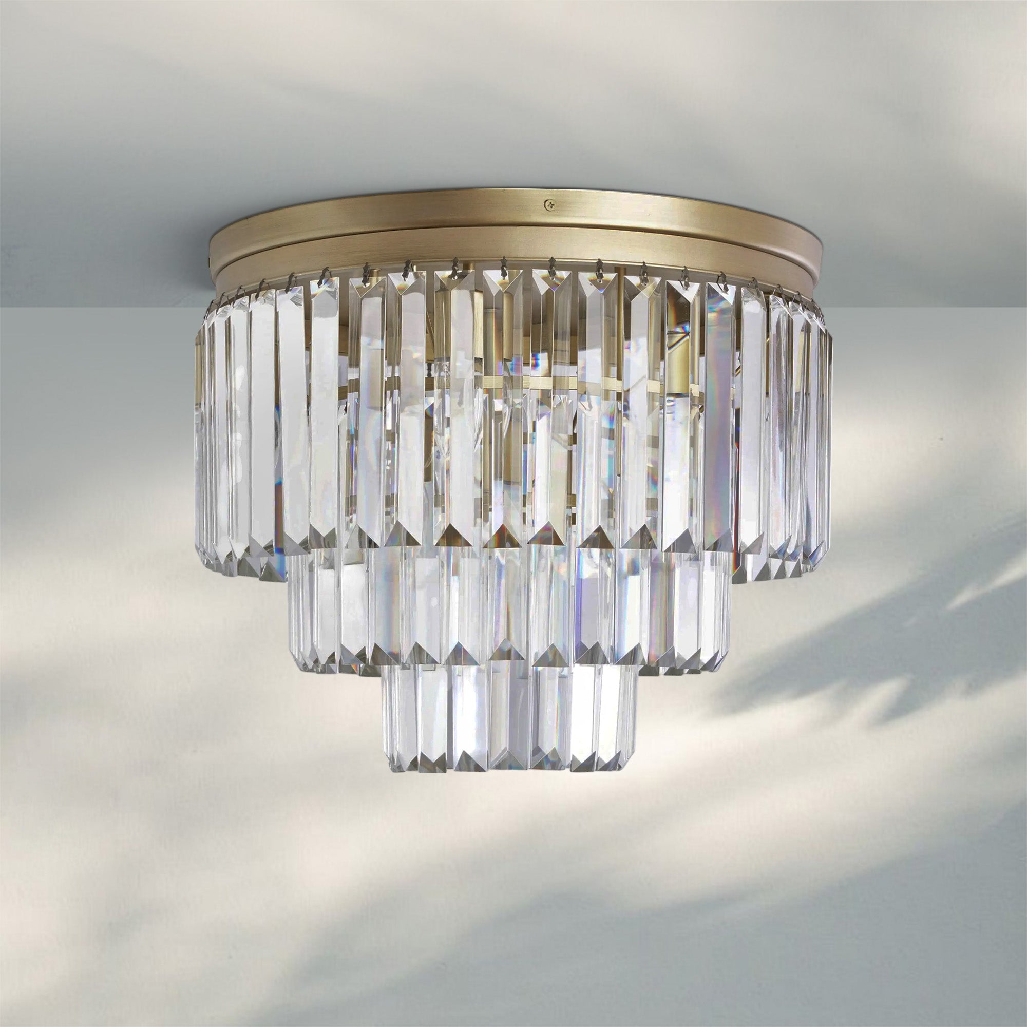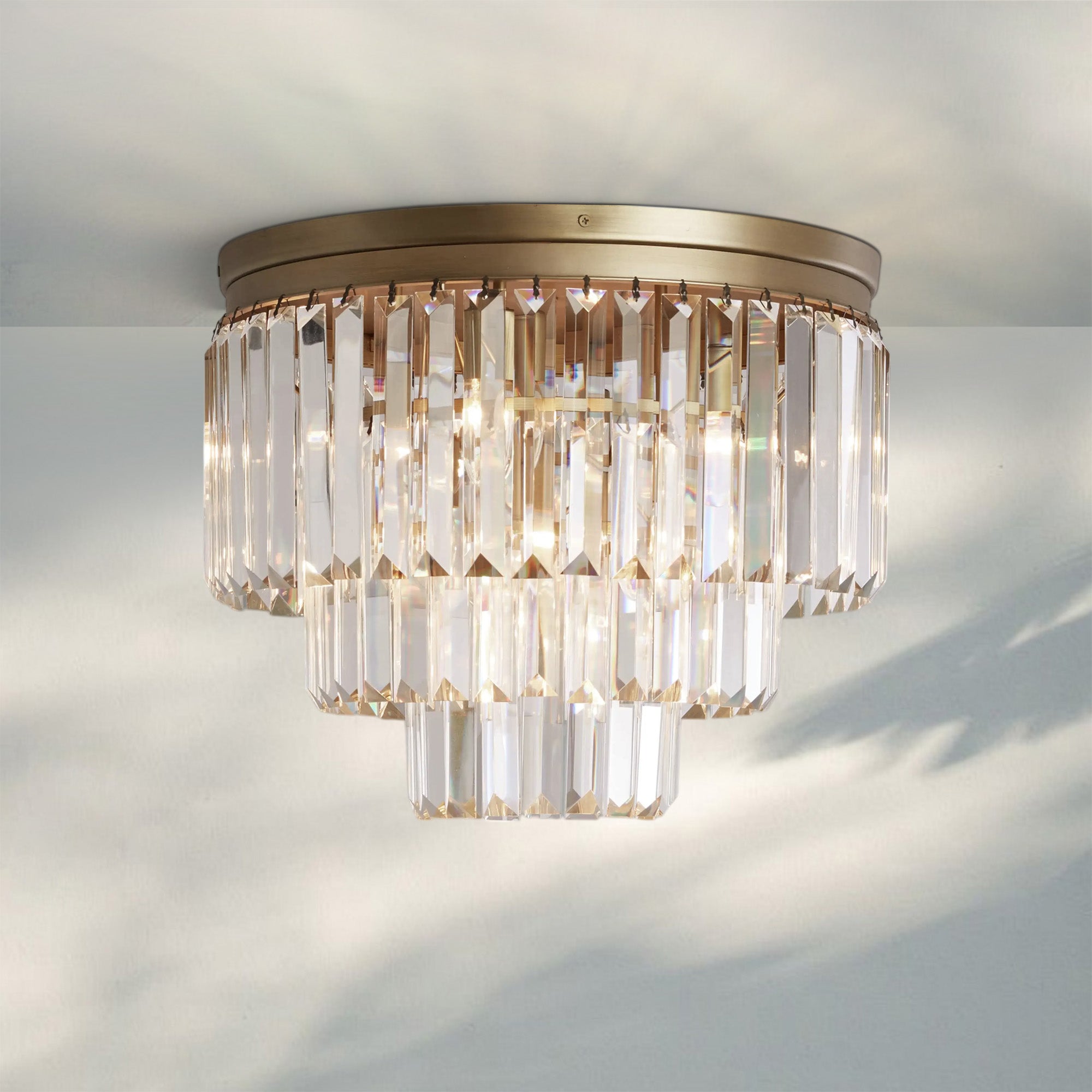 French Art Deco style of the 1920s is reborn in our glamorous Leyland Lighting Collection, featuring layered row upon row of faceted glass crystals from a rustic iron frame.