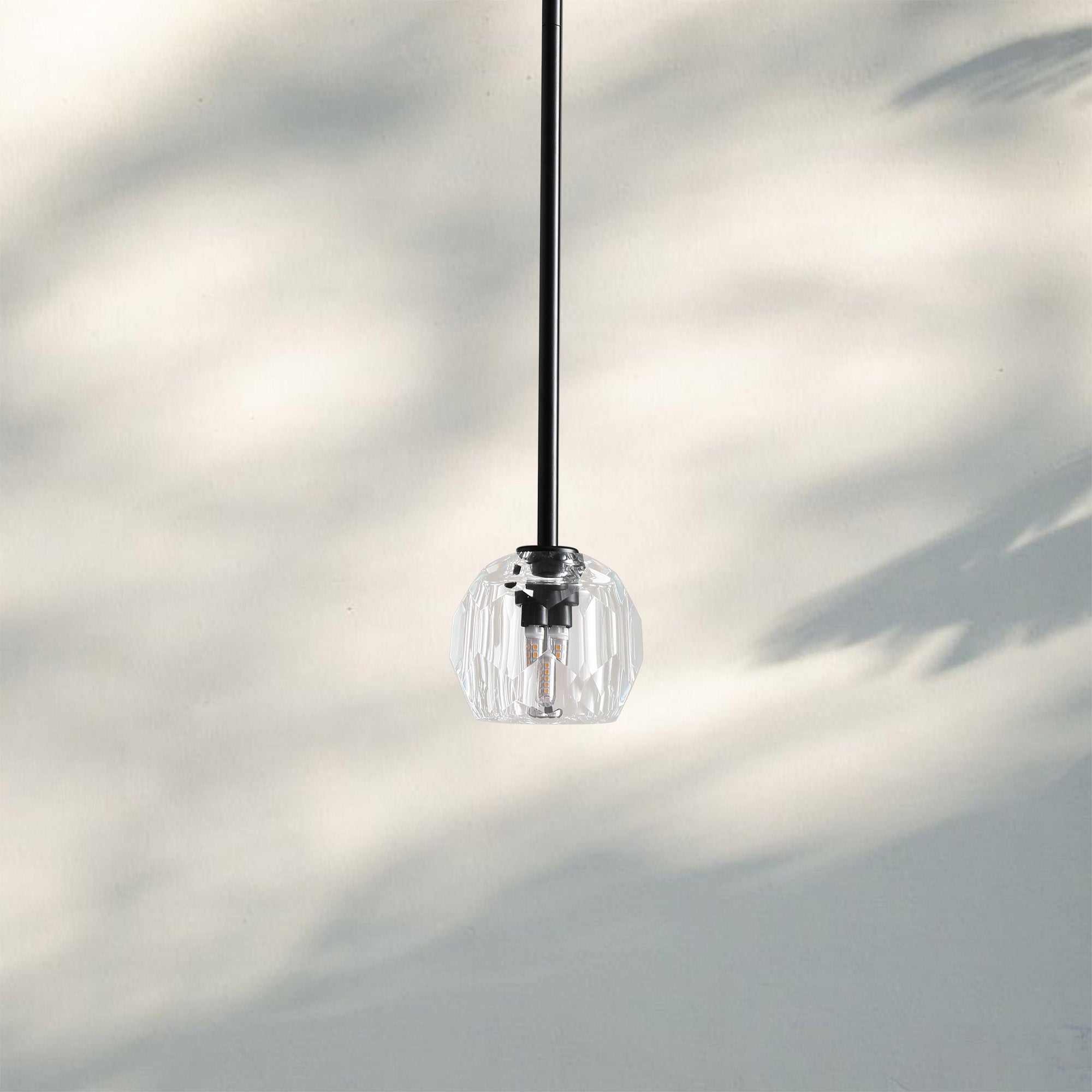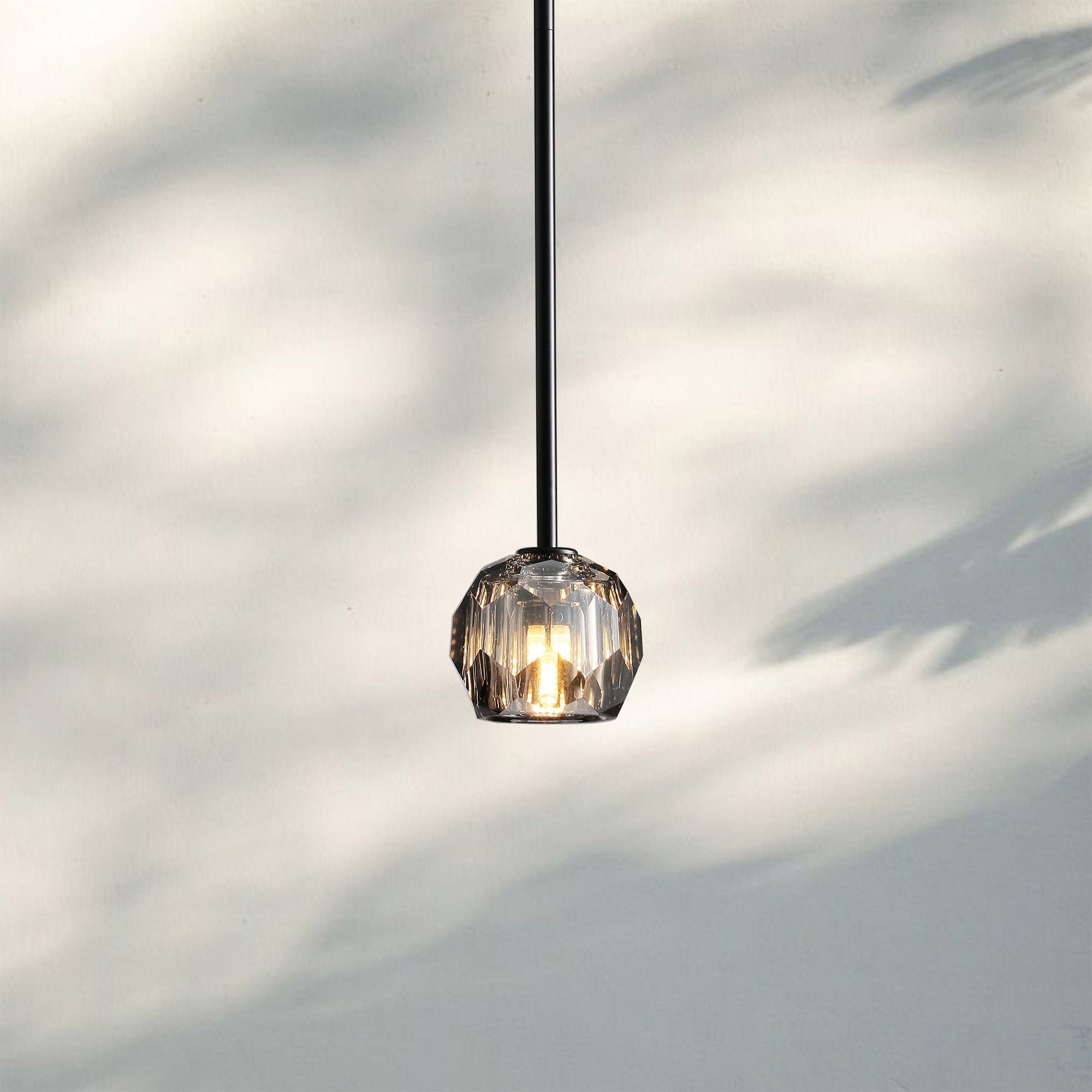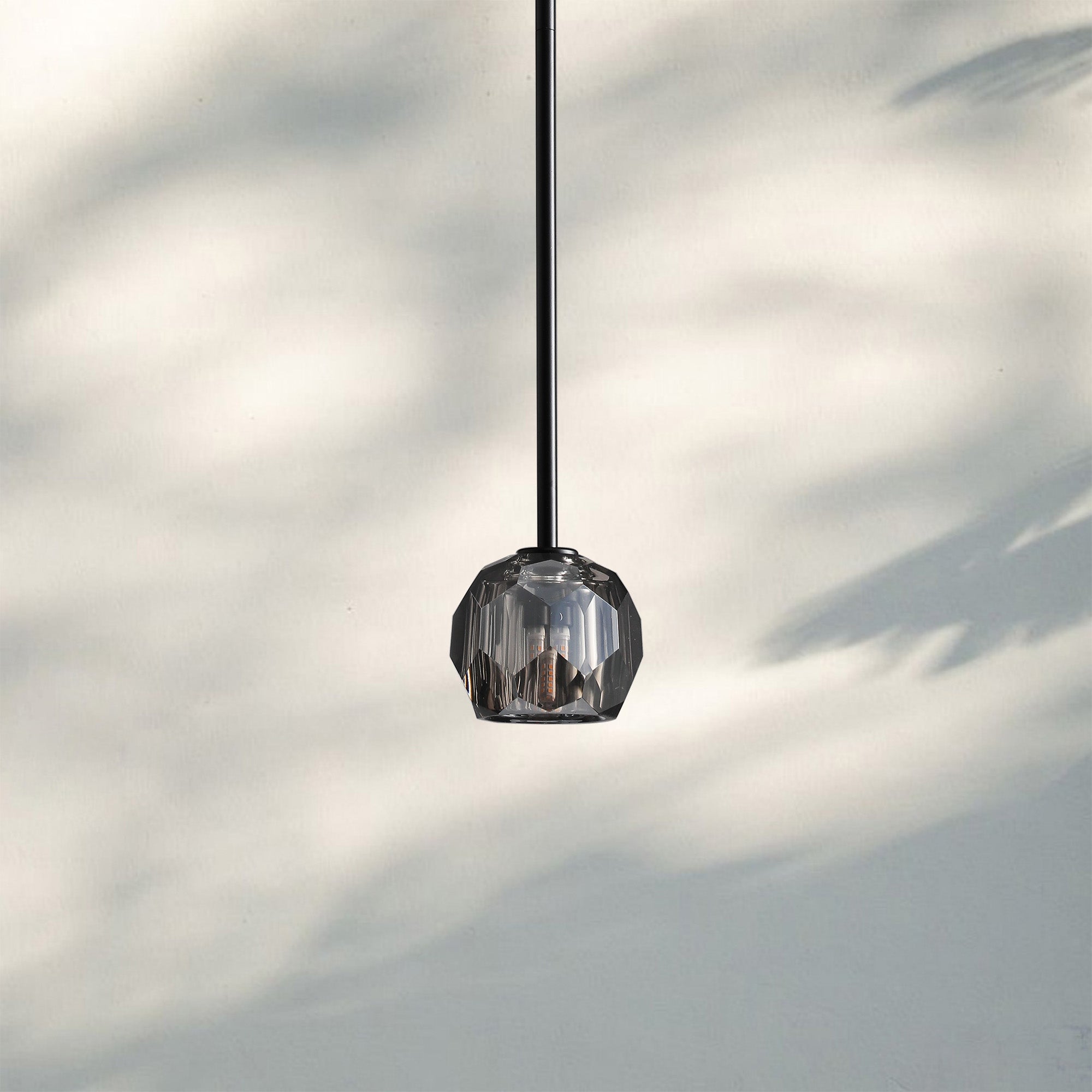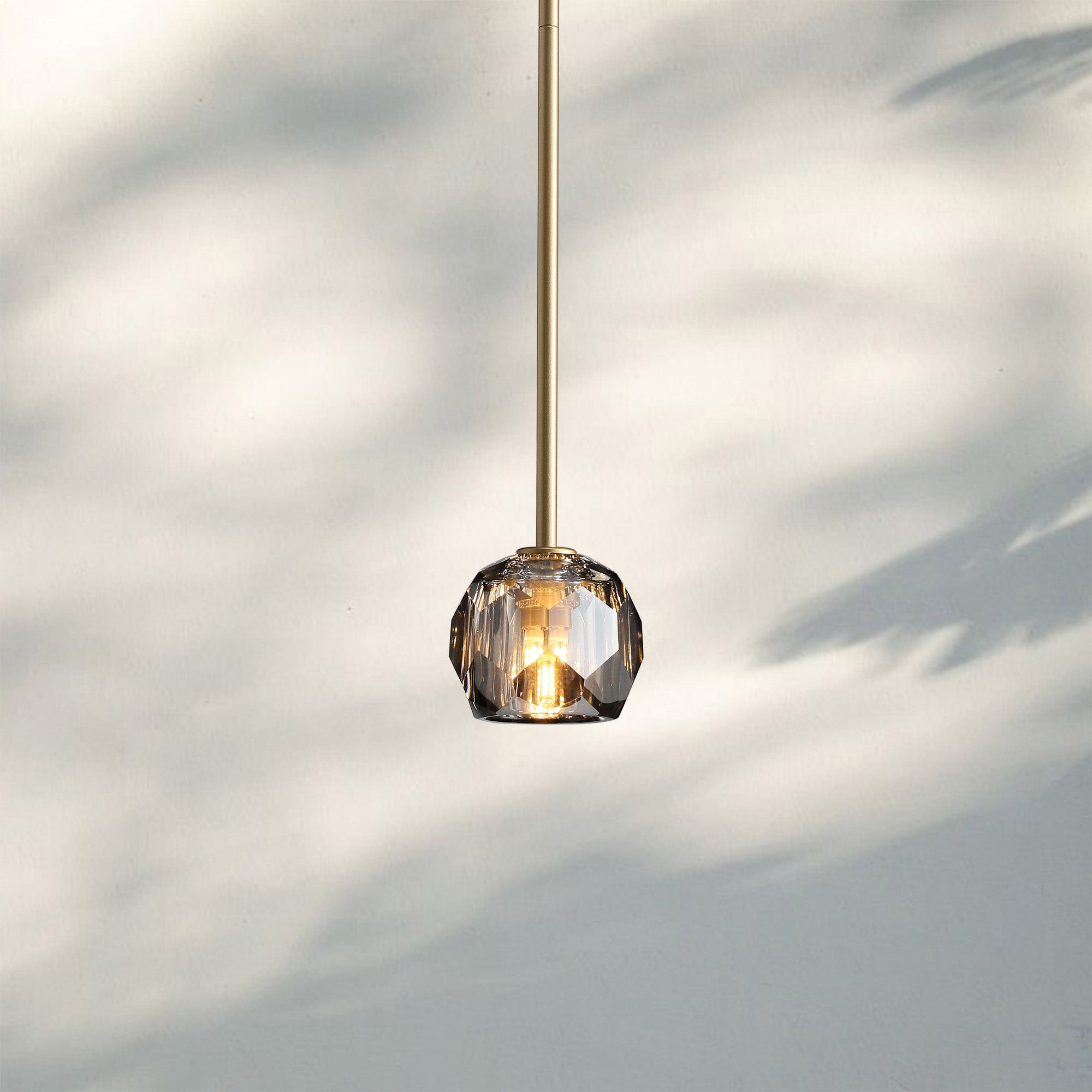 Crafted from solid brass and crystal glass, the Bouble collection of luminaires exemplifies his passion for luxury materials and superior craftsmanship. Each faceted sphere is hand polished and honed to reflect and refract light while fully showcasing the minimalist design.