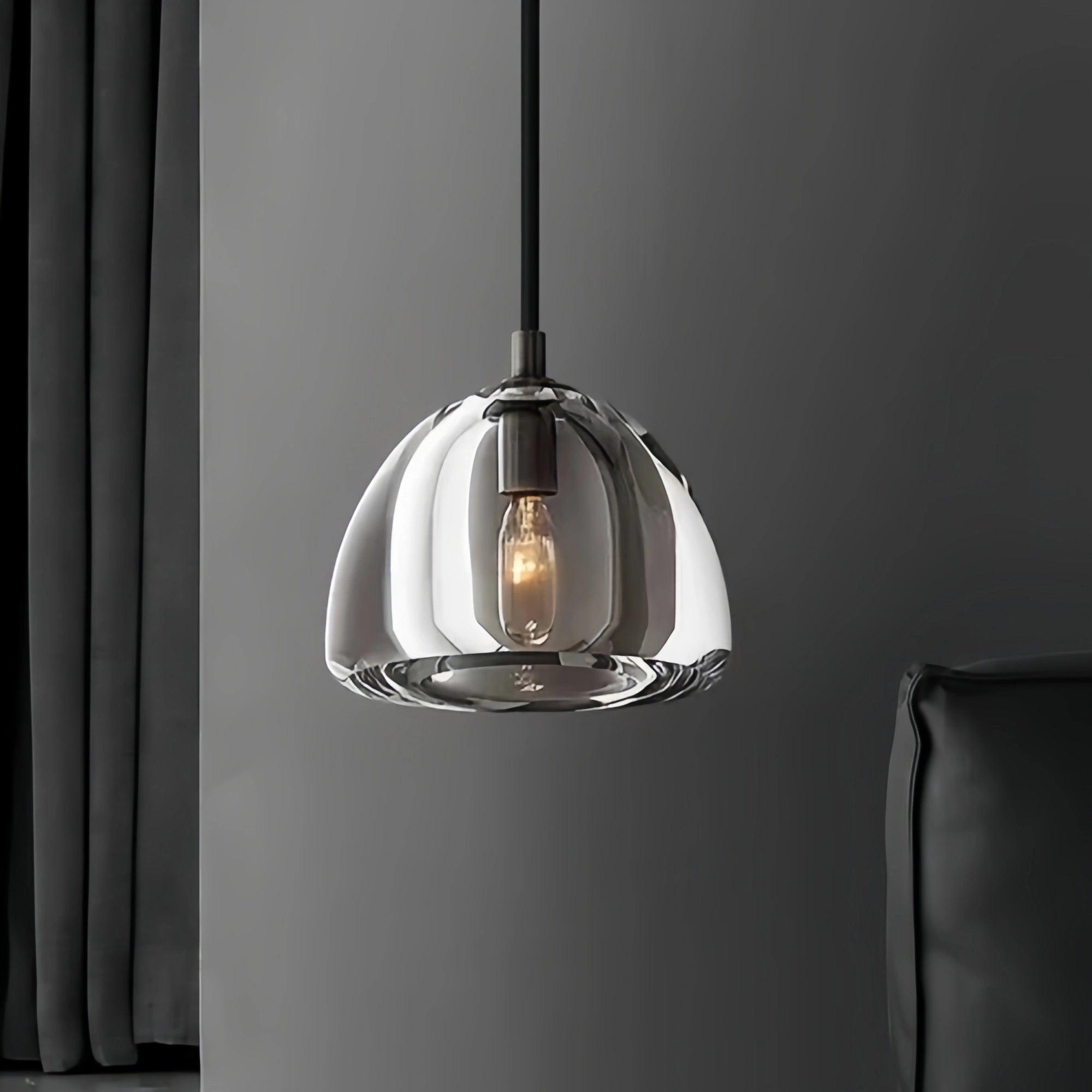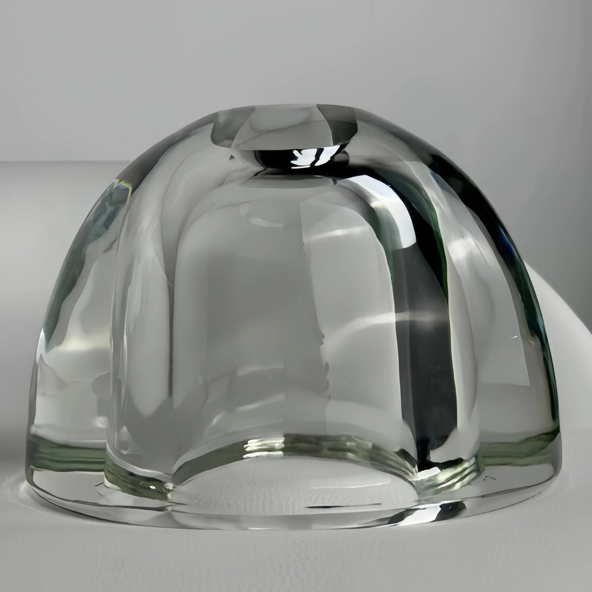 The crystals of the Hemisphare Collection fixtures are made of glass that has been lathe-engraved and hand-polished over several days to shine with a mesmerizing luster. The heavy dome hangs from a brass frame that mirrors the delicate curves.