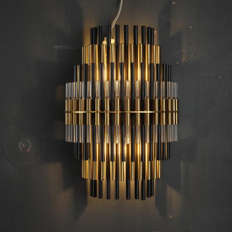 This Wall Sconce is constructed from a metal frame and is inspired by the industrial design of the 1920s, a design used for decorative lighting. Multi-layered brass tubes make a unique feeling.