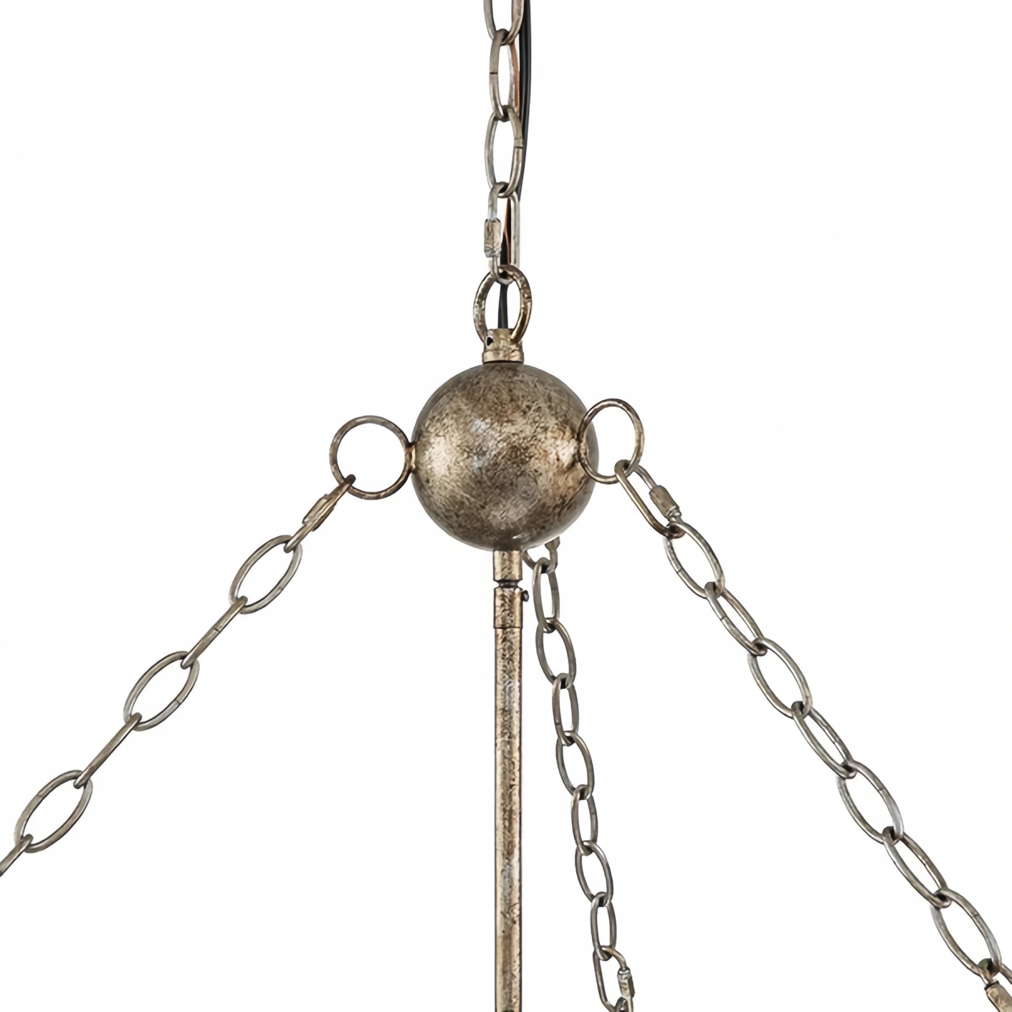 Stunningly elegant and enchantingly glamorous, our Andalucia Chandelier showcases glass crystals arranged around an iron frame with a hand-worked Antique Silver foil finish.