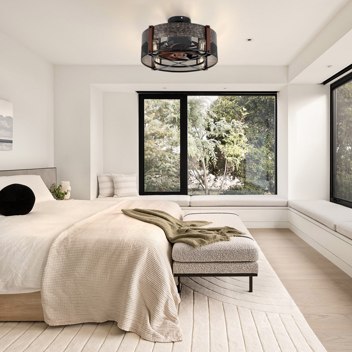 Caged Ceiling Fan with Light and Remote Black Bladeless Reversible Low Profile 19"