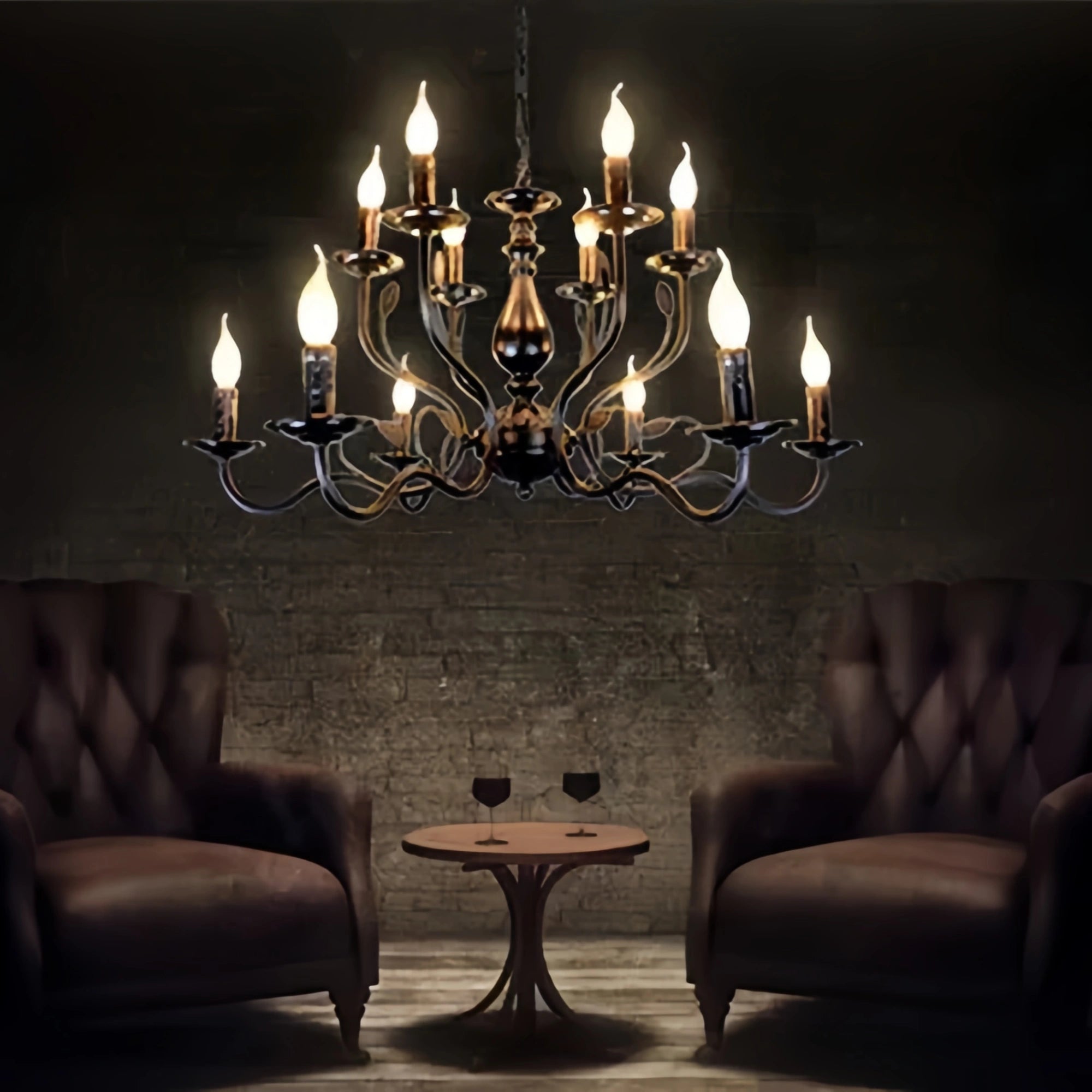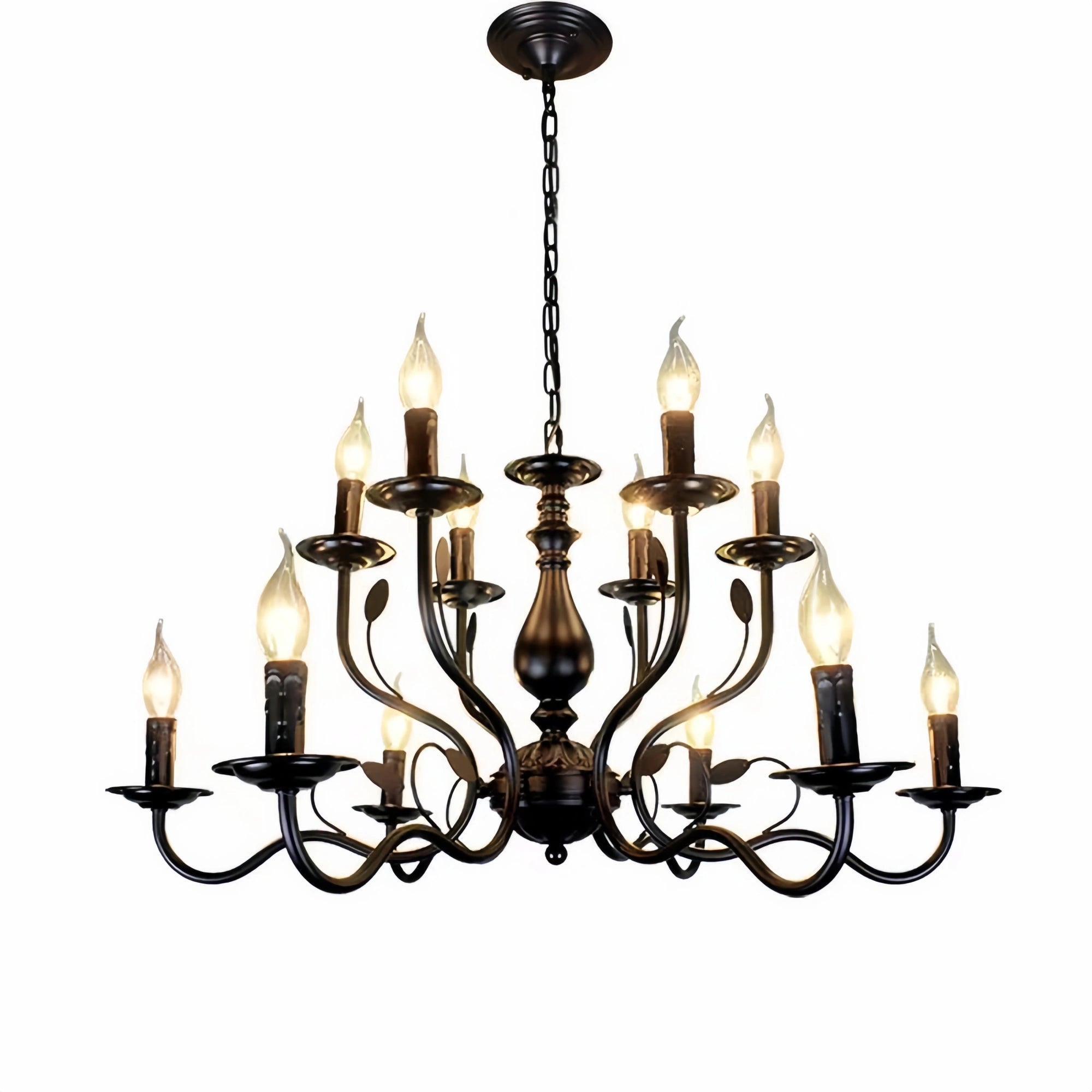 Multi Layer Iron Chandelier with Electronic Candles in Vintage Country Style for Living Room Cafe and Study